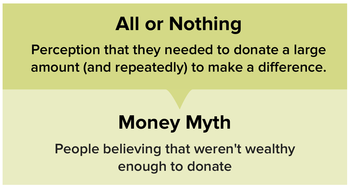 Donating is seen as a private activity. Because donors are internally motivated to give, they don't see the need to tell others for fear of bragging. But they still want to spread awareness for the causes they support, only if it seems organic and casual.